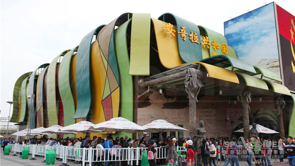 展館外墻以非洲木雕為裝飾,張揚(yáng)安哥拉的民族特色。其造型靈感來自于安哥拉國(guó)花、壽命可長(zhǎng)達(dá)300至1000年的百歲蘭。展館內(nèi)則分為七個(gè)展區(qū),展示了安哥拉的雕刻和繪畫、石油與鉆石業(yè)等特色與成就。館內(nèi)展品包括富有民族特色的雕刻和繪畫,融合展區(qū)的現(xiàn)代科技展示手段,不僅表現(xiàn)出安哥拉與水難以割舍的淵源,也對(duì)其城市發(fā)展的可持續(xù)性進(jìn)行了探索和展示。