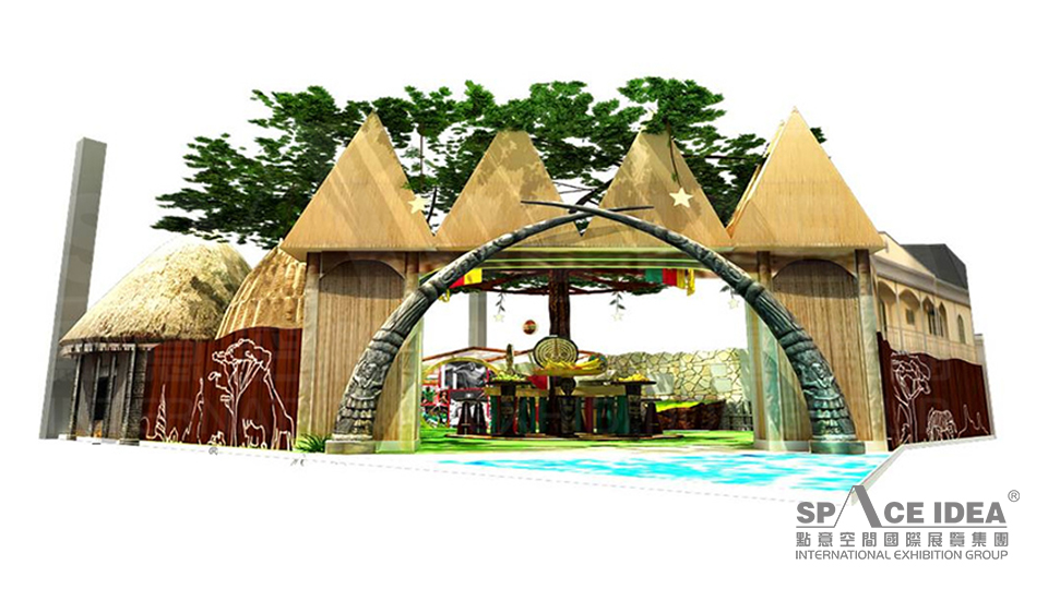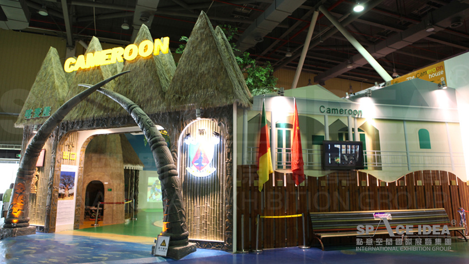 喀麥隆展館的主題為城市社區(qū)的重塑,以大樹為核心設(shè)計(jì),敞開式空間以綠、黃、藍(lán)為主色,展現(xiàn)喀麥隆自然、樂觀、富有動感的民族風(fēng)情。展區(qū)模擬喀麥隆高原、海灘、雨林等多樣的自然環(huán)境,同時展示喀麥隆城市民居建筑發(fā)展的新貌。城市社區(qū)的重枝繁葉茂的大樹覆蓋整個展館,反映了喀麥隆對森林的重視和有效保護(hù)。館內(nèi)的模擬足球場以音響燈光營造動感氛圍,使人充分感受喀麥隆城市的愜意生活和運(yùn)動激情,還有喀麥隆人民對足球的熱愛。