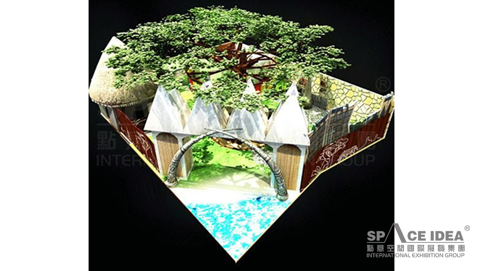展示內(nèi)容展館有五個展區(qū)。以“樹”為核心設(shè)計(jì)元素,營造喀麥隆高原、海灘、雨林等多樣的自然環(huán)境,運(yùn)用視覺、聲、光、電等現(xiàn)代展示手段,傳達(dá)“美好的城市社區(qū)生活本是天、地、人和諧共融、渾然一體”的理念。