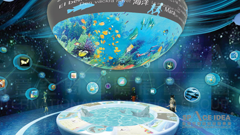 通過中華白海豚球幕影像互動裝置和海洋環境暨生態保護二大展項講述中國在海洋和海岸開發與保護方面做出的努力及取得的成功經驗,最終引起參觀者的思考。