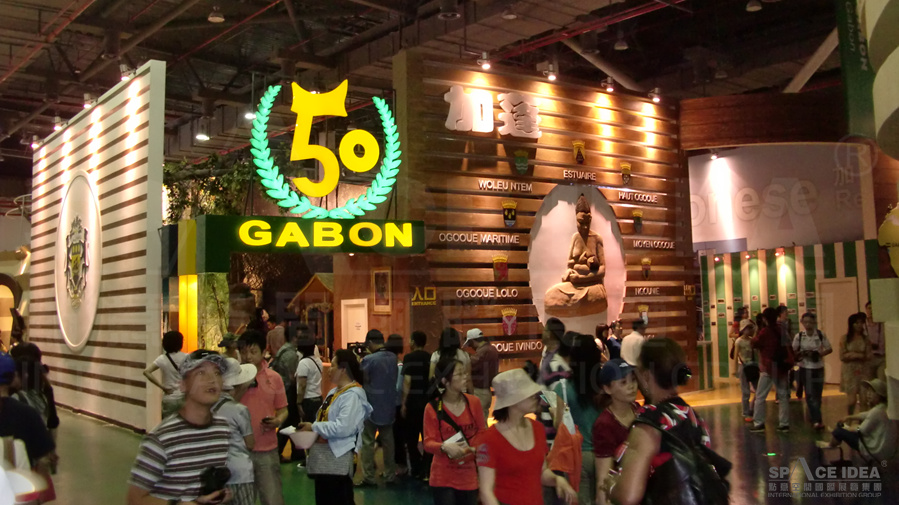 The theme of Gabon Pavilion is interaction between city and countryside. At the entrance of the pavilion, the unique red earthen walls and wooden bars in Africa stand out naturally, decorated with relief sculptures of Gabon's famous domestic sculptures and the symbols of the provinces. The museum is divided into three exhibition areas: "rural civilization", "urban civilization" and "natural forest resources", shows the concept of the complete integration of urban and rural: we come from the countryside to the city, find ourselves in the city, realize ourselves, and finally return to the countryside. The exhibition area of "rural civilization" shows the rural life and rural civilization of Gabon through intuitive crafts and building models, especially the evolution process of Gabon's traditional living form. The exhibition area of "urban civilization" shows the modern city features through projection and multimedia video. The "natural forest resources" exhibition area showcases the natural scenery, plant and animal resources, and tourism resources of Gabon.