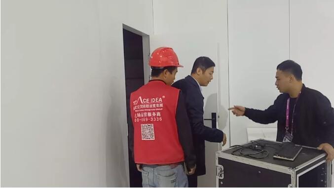The Shanghai branch of Space Idea International Exhibition Group undertook planning, design and construction tasks for the overall atmosphere construction of the first CIIE. The 1st CIIE is about to open, on November 1st, Mr. Lu yugui, President of Space Idea, came to the expo site, inspected the completion of the atmosphere construction project and held the on-site office meeting.