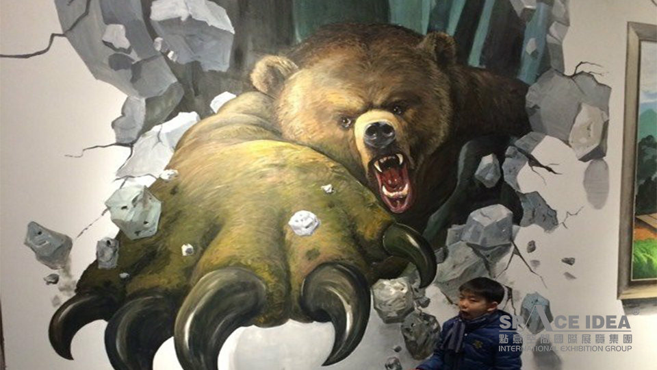 第二個展廳一邊是泰迪熊3D壁畫,一邊是按照世界珍惜名畫做的立體泰迪名畫,看著很是有趣。
