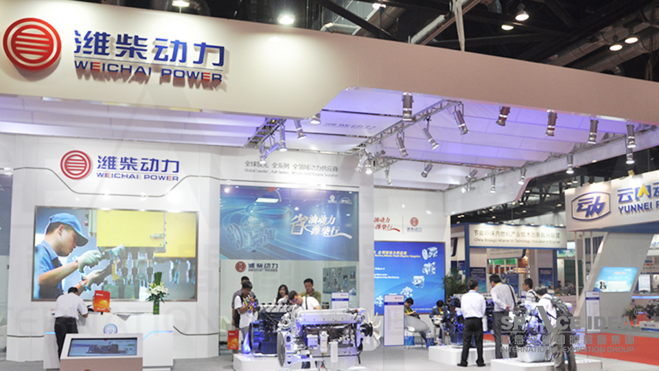 展廳設計要求:針對本次展會20M*10M的展位面積,沿用濰柴動力一貫的設計風格,達到視覺延續性,籍此以提高觀眾的認知程度; 展廳設計主題:“省油動力濰柴行” 展廳設計說明: 1、采用濰柴一貫的風格, 2、通過燈光效果凸顯產品 3、LED屏介紹產品,加深參展者印象