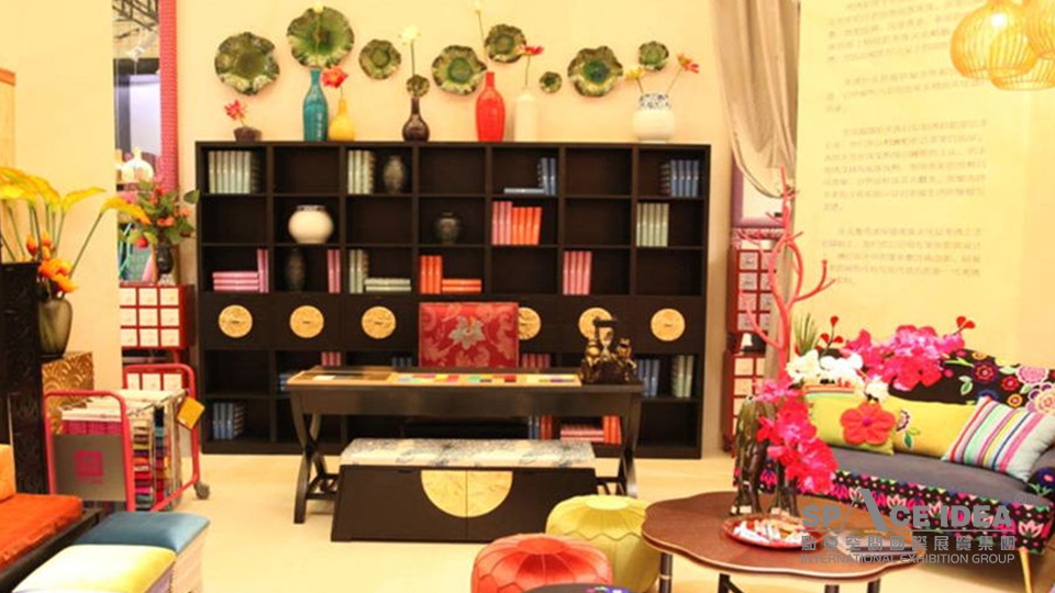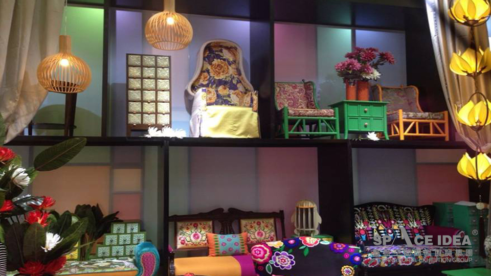 以羌繡形成的五彩繡片作為主要元素進行展區設計,突出主題展項。
