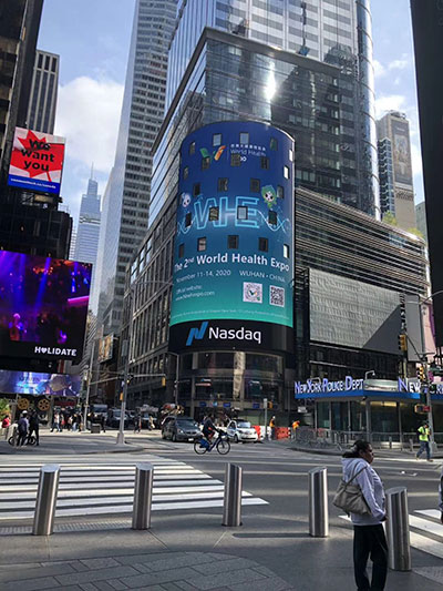 紐約時代廣場是全球最受矚目的商業核心地段,此處的納斯達克大屏也是“吸引世界目光”的最佳窗口之一。世界大健康博覽會登陸紐約時代廣場,向世界展示了武漢對于提振經濟社會發展信心,推進全球公共安全合作的決心。